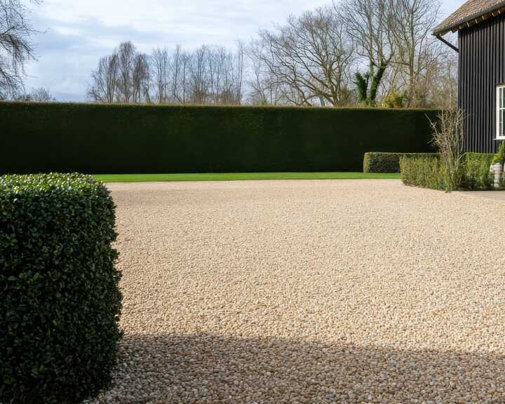 Gravel driveways are a rustic, practical option for larger outdoor spaces, with excellent drainage and visual appeal. Providing excellent traction, gravel driveways are especially effective in wet or icy conditions.